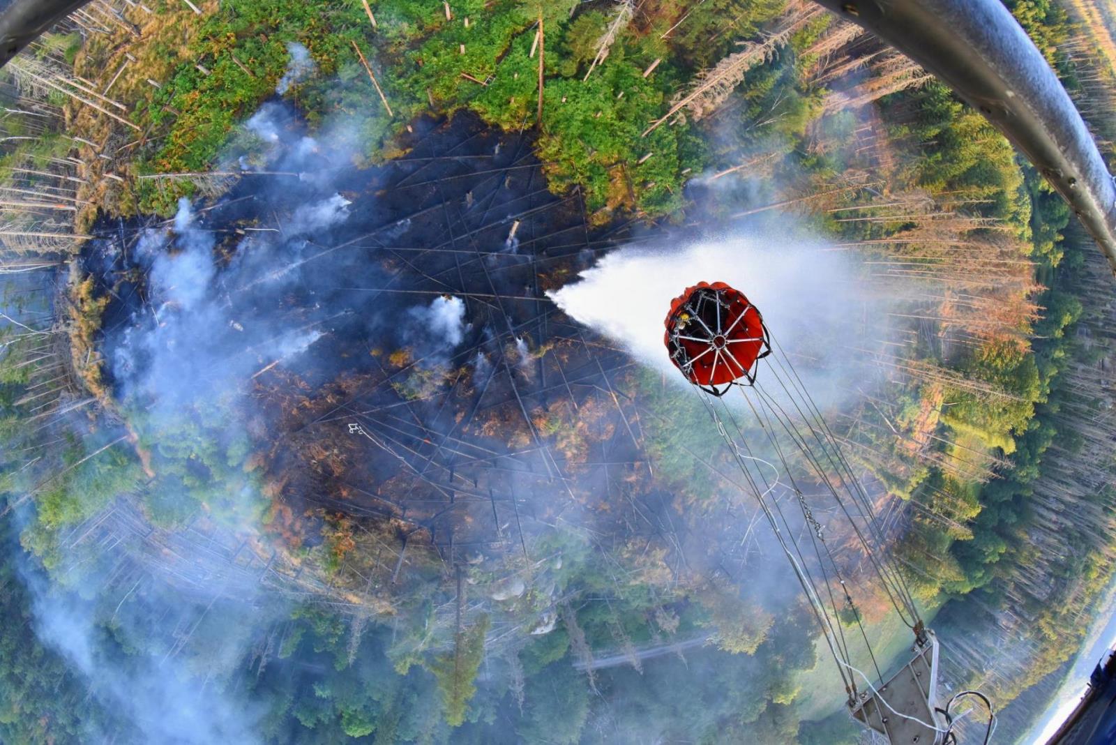 10:00 Ve vzduchu bude dnes létat pět vrtulníků, z toho čtyři budou provádět hasební práce. Zaměří se na lokality: sever od Pravčické brány, Stříbrné stěny, Borový a Mezní důl, západ od Bouřňáku. Území stále připravujeme tak, aby měly národním parkem nasmlouvané dobrovolné jednotky připravené v terénu mobilní čerpadla, hadicové vedení i nádrže s vodou.