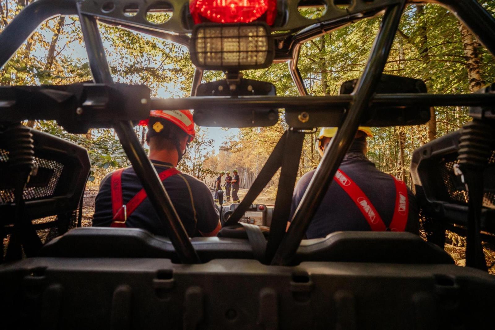 8:20 Drony ranním průzkumem objevily místa se zvýšenou teplotou v oblasti Smrkového kopce, Březového dolu, Oltářního kamene. Místa se ověřují, zda se jedná o ohniska. Ta se likvidují pozemní cestou. Foto ranní rozdílení úkolů.