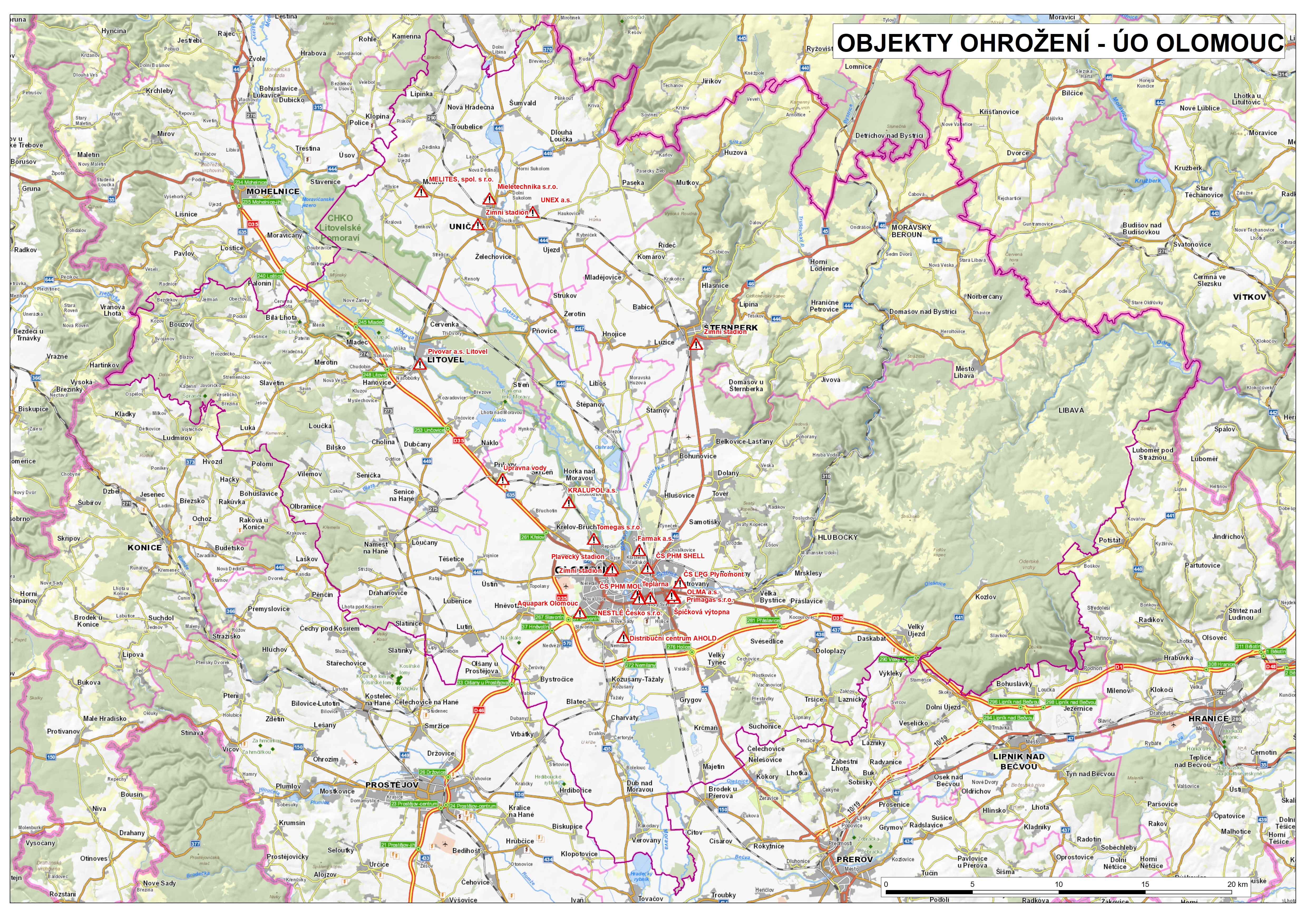 Nebezpečné ohrožující látky - výskyt nebezpečných látek na území jednotlivých obcí s rozšířenou působností v Olomouckém kraji, účinky jednotlivých látek, způsob ochrany...