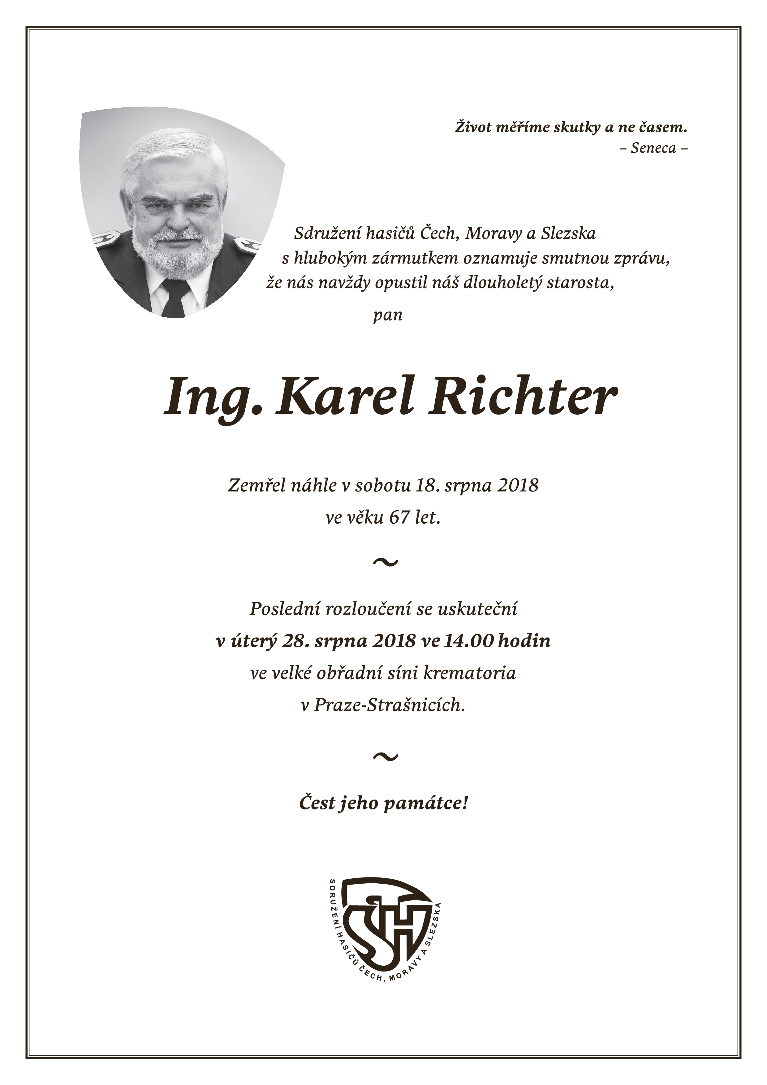 S hlubokým zármutkem oznamujeme smutnou zprávu, že v sobotu 18. srpna 2018 náhle zemřel starosta Sdružení hasičů Čech, Moravy