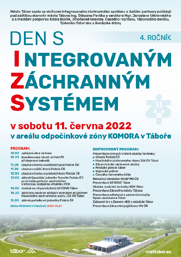 Město Tábor společně se složkami Integrovaného záchranného systému pořádají pod záštitou starosty města Tábora Ing. Štěpána Pavlíka a senátora Mgr. Jaroslava Větrovského 4. ročník Dne s integrovaným záchranným systémem.