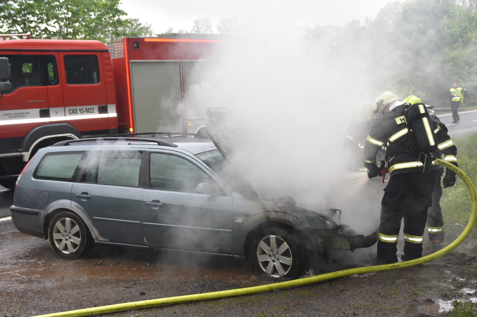 Začne-li se za jízdy kouřit z motorového prostoru vozidla nebo ucítíme-li zápach spáleniny, vozidlo okamžitě zastavíme. Pokud nám to situace umožňuje, nezastavujeme v místech, kde by požár mohl způsobit další škody (v blízkosti jiných vozidel, budov, benzínových čerpacích stanic, plastových kontejnerů a popelnic). Na dálnicích a silnicích pro motorová vozidla se snažíme zastavit v odstavném pruhu, nebo co neblíže k němu. Po zastavení vozidla vypneme motor a automobil rychle opustíme. Než však z vozidla vystoupíme, pokud to situace dovolí, oblékáme si reflexní vestu. Nezapomeneme z vozu pomoci dětem, starším osobám, případně zvířatům. Zůstaneme v dostatečné vzdálenosti mimo vozovku, pokud možno za svodidly. Z důvodu bezpečnosti necháme u vozidla zařazen rychlostní stupeň. Při zatažené ruční brzdě může dojít k jejímu přehoření a samovolnému rozjetí vozidla z kopce. Poté ihned zavoláme hasiče na čísle 150 nebo 112.