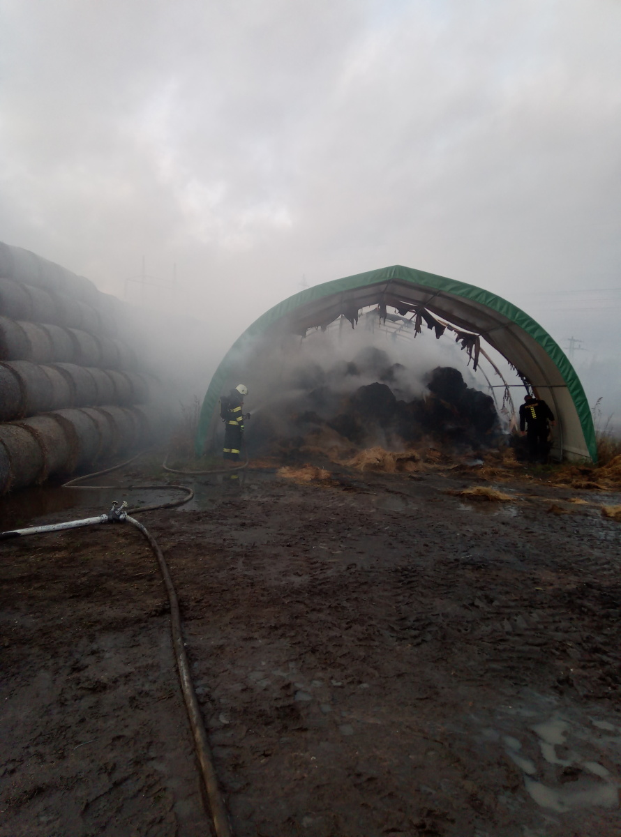 Průzkumem hasiči zjistili, že vedle sebe stojí dva stohy balíků sena a slámy, z toho jeden o rozměrech asi 8x20 m už hořel. Hasičům se podařilo plameny odříznout a druhý stoh o velikosti asi 100x20 m zachránili. Lokalizaci požáru ohlásil velitel zásahu v 03:37 hod. Jednotky byly v ranních hodinách stále ještě na místě, pomocí firemního nakladače vyskladňují balíky ze zasaženého stohu a dohašují ohniska požáru. Na místo si velitel zásahu povolal také protiplynový kontejner z hradecké centrální stanice, aby měli zasahující hasiči dostatek dýchacích přístrojů.