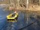 Zasahující hasiči připravili speciální nafukovací sáně, které jsou ve výbavě každého provýjezdového vozu HZS MSK a jištěni lanem se postupně po vodě a ledu dostali k vystrašenému zvířeti.