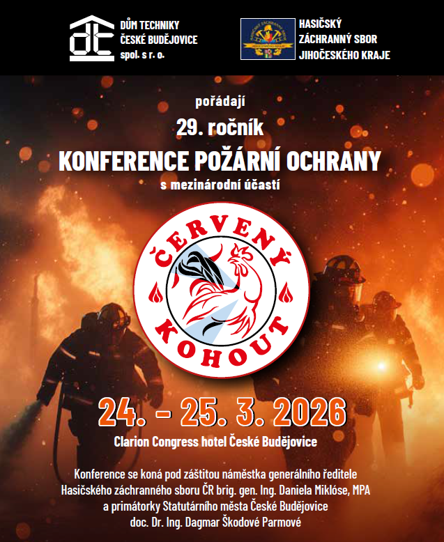 Ve dnech 24. a 25. března 2026 budou České Budějovice hostit tradiční odbornou konferenci požární ochrany s mezinárodní účastí – Červený kohout. Vysoce prestižní konference se bude konat již po 29. a využije opět konferenční prostory Clarion Congress hotelu České Budějovice.