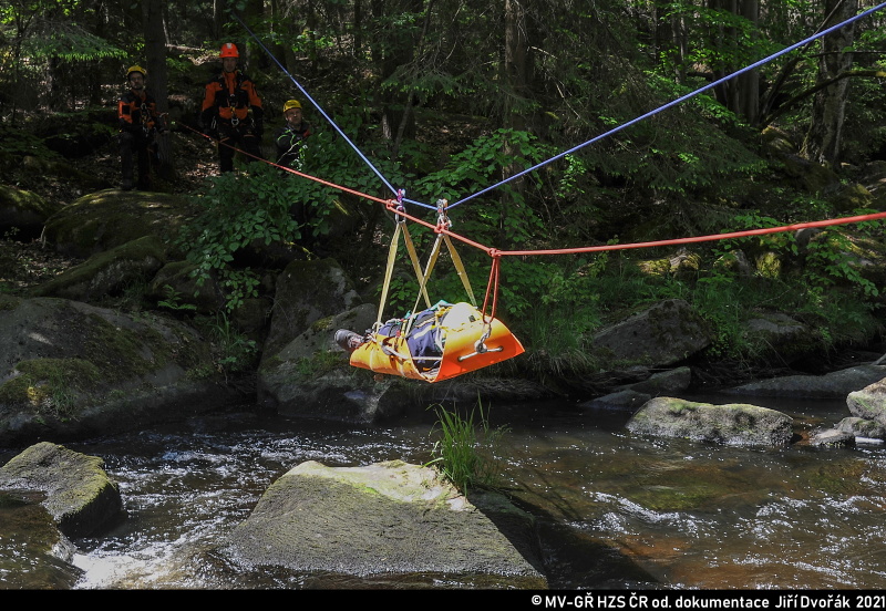 Druhý den se trénovala záchrana zraněného turisty v lokalitě Národní přírodní rezervace Čertova stěna a to pod dohledem člena ochranářů NP Šumava - Blanský les. Hlavní instruktor pro práce ve výšce a nad volnou hloubkou pprap. Miroslav Švec: „Právě tady na Šumavě existuje mnoho oblastí, kam nejde k zraněnému zajet autem nebo nelze k záchraně využít vrtulník. Proto cvičíme i tyto způsoby transportu osob, tedy vytvoření 120 m dlouhého lanového přemostění ze stezky za řekou až na vrchol Čertovy stěny.“