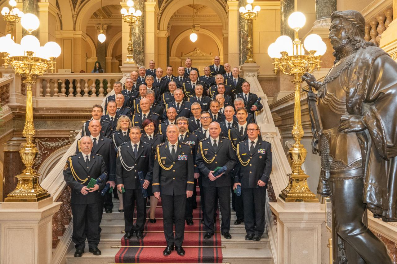 Společné foto HZS krajůGenerální ředitel Hasičského záchranného sboru ČR genpor. Ing. Vladimír Vlček, Ph.D., MBA udělil u příležitosti státního svátku 28. října služební medaile Hasičského záchranného sboru ČR příslušnicím a příslušníkům Hasičského záchranného sboru Ústeckého kraje. Slavnostní akt proběhl 28. 11. 2022 v prostorách Národního muzea v Praze.