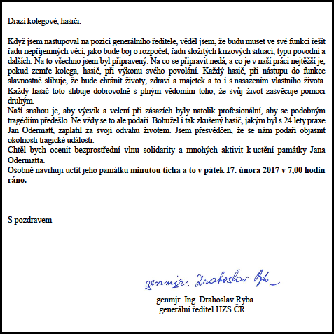 Minuta ticha za uctění památky zemřelého kolegy