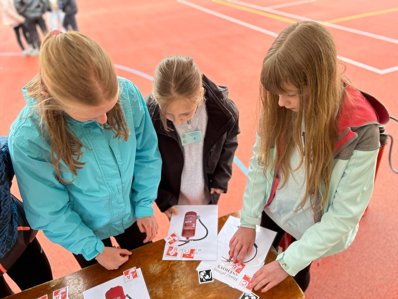 Děti soutěžily ve třech soutěžních disciplínách, a to: možnost hašení jednotlivých druhů materiálů přenosnými hasicími přístroji, správné sbalení evakuačního zavazadla a srážení plastových lahví proudem vody ze džberové stříkačky.