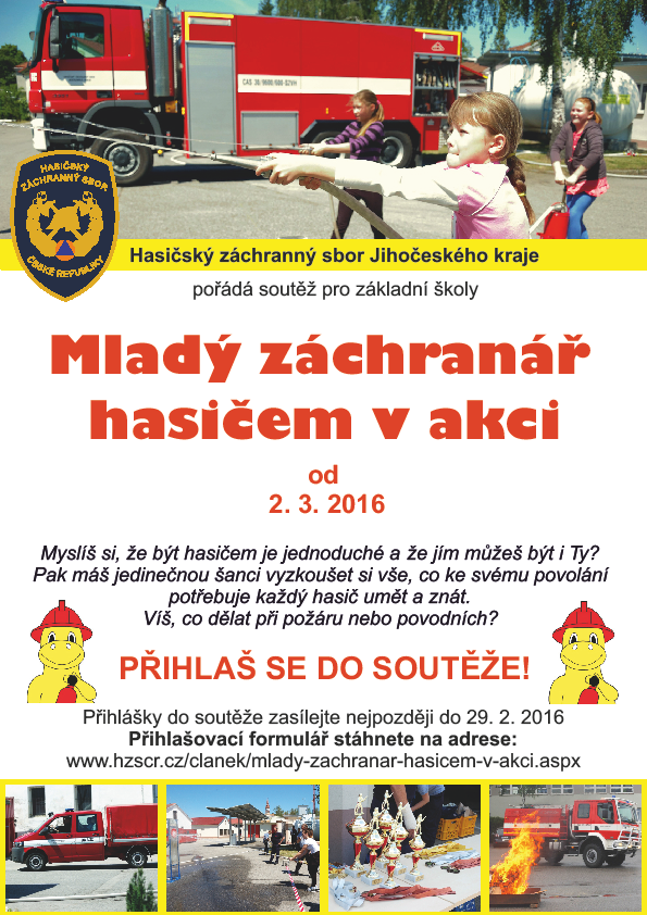 - Krajské ředitelství HZS JčK pro realizaci této soutěže je zřízena FB stránka s názvem Mladý záchranář - hasičem v akci.