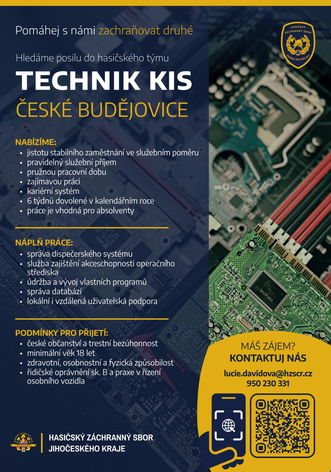 V Českých Budějovicích na krajské ředitelství hledáme odborníka v IT technologiích. Pokud máte zájem a odbornost uvedenou na přiloženém letáku, neváhejte kontaktovat naše personální oddělení.