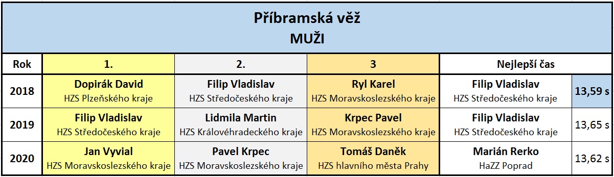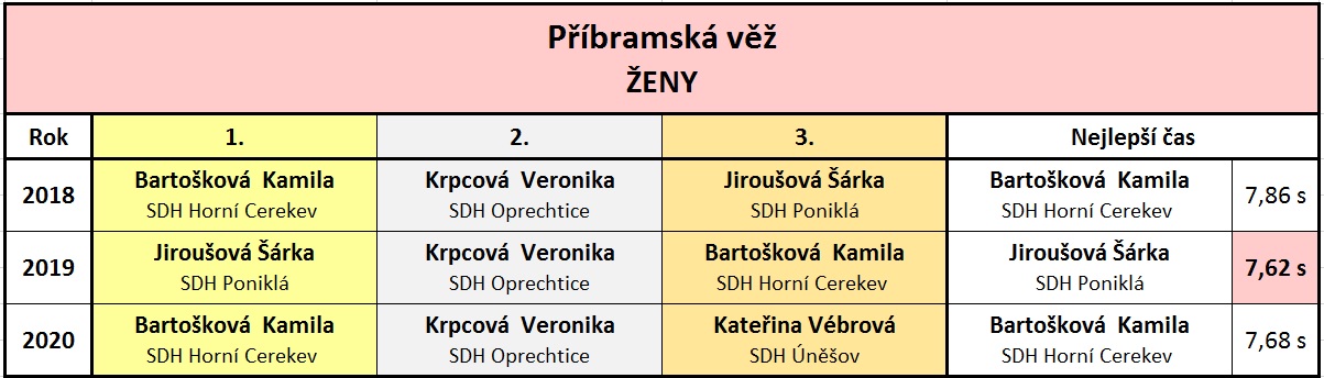 V obou kategoriích byly vyhlášeny také nejlepší výkony. V ženské kategorii se o něj časem 7,68 s postarala ve čtvrtfinálovém běhu Kamila Bartošková, když za rekordem soutěže Šárky Jiroušové (SDH Poniklá) z loňska zaostala o šest setin sekundy. Cena pro nejrychlejšího muže putuje na Slovensko zásluhou Mariána Rerka, který tak z Příbrami nakonec neodjel s prázdnou. V tomto případě ale rozhodoval druhý nejlepší pokus, protože stejný čas 13,62 s jako Rerko zaznamenal i Pavel Krpec. K vyrovnání rekordu Příbramské věže Vladislava Filipa z HZS Středočeského kraje z prvního ročníku však chyběly tři setiny sekundy.