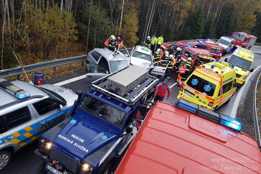 104FOTOGALERIEV neděli 22. října 2017 v 10:20 hodin vyhlásilo operační středisko poplach hasičům v Železné Rudě a vyslalo je směrem na Javornou k dopravní nehodě dvou osobních aut. Vozidla se střetla ve velké serpentině nedaleko odbočky na Zhůří.