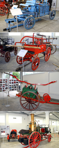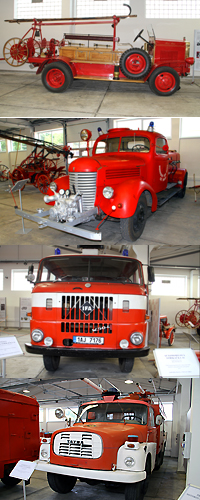V první části budované expozice si mohou návštěvníci prohlédnout vybrané exponáty historické požární techniky z období 18. a 19. století, koněspřežné a parní stříkačky. Dále je možné shlédnout techniku z období první republiky, například automobilovou stříkačku na podvozku Škody 505 z roku 1928. Dále následuje ukázka techniky z období 50. let 20. století, kterou představuje například tzv. automobilová stříkačka cisternová 16 na podvozku Praga RN z roku 1952. Závěr expozice je věnován technice, která byla hasiči používána v 70. a 80. letech 20. století, vozidla na podvozcích Tatra 148, Škoda 706 RTHP Karosa nebo Avia. U východu čeká návštěvníky prototyp požárního robota, který byl určen k manipulaci s tlakovými lahvemi v místech zasažených požárem. K soustředění mnohých unikátních exponátů, které můžete nyní shlédnout v expozici, významně přispěli darováním nebo zapůjčením sbory dobrovolných hasičů, některá města a obce i příslušníci Hasičského záchranného sboru České republiky. |