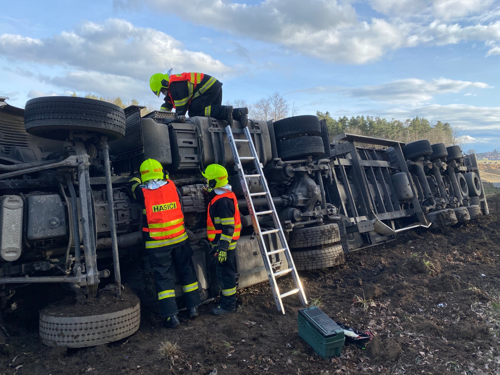 Profesionální hasiči ze stanic České Budějovice a Český Krumlov spolupracovali v pátek 19. února po 15. hodině s jednotkou SDH obce Velešín u dopravní nehody nákladního auta, které havarovalo u Kamenného Újezdu, části obce Krasejovka.