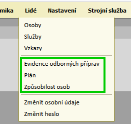- v evidenci osob přibyla záložka "Způsobilost", kde najdete soupis způsobilostí členů podle stavu v databázi HZS. Na nástěnce se objeví informace, pokud některému členu jednotky odborná způsobilost prošla a je třeba ji obnovit nebo se blíží konec její platnosti.