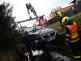 Osobní automobil skončil v korytě potoka. Drobnému úniku provozních náplní hasiči bránili sorpčním hadem a speciálním hydrofobním sorbentem.