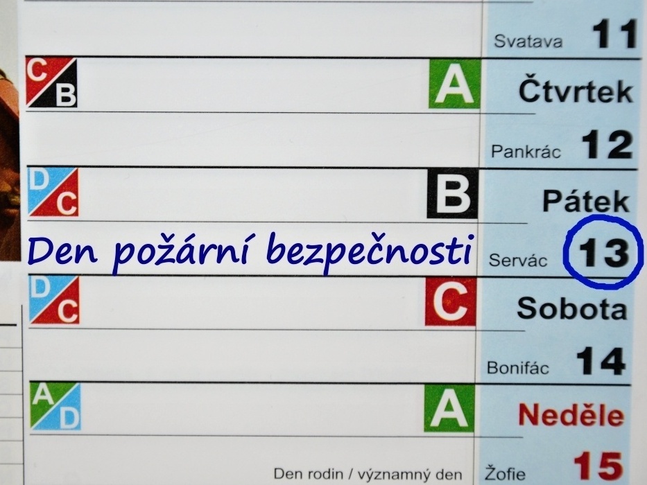 Právě toto datum vyhlásila letos Česká asociace hasičských důstojníků za účelem propagace požární ochrany a preventivního působení na veřejnost za Den požární bezpečnosti. Někteří lidé považují pátek třináctého za běžný den jako každý jiný. Ale velká část jej považuje za nešťastný den. Hasiči se snaží tuto pověru „zlomit“ pořádáním různých preventivních akcí.