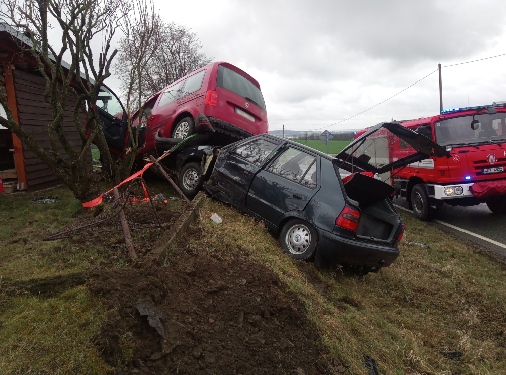 Po nehodě u Dobrušky zůstala auta zaklesnutá do sebe