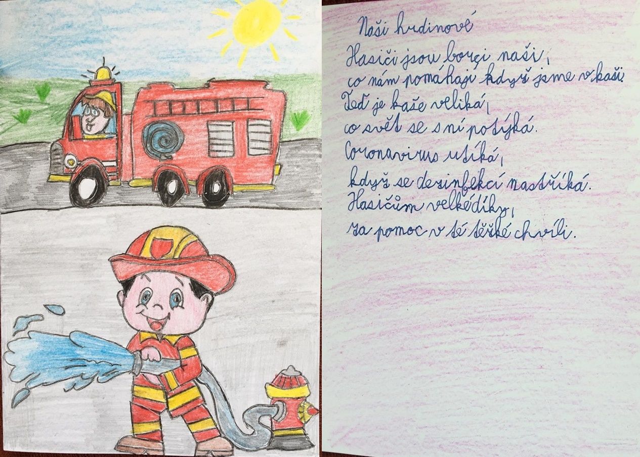 V rámci projektu center FOKUS Vysočina jsme jako poděkování záchranářům dostali obrázek s básničkou od žáka ze základní školy v Hlinsku. Děkujeme.