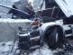 V těchto chvílích se hasiči snaží dostat utrženou kabinu z mostu, mj. pomocí jeřábu a vyprošťovacích automobilů.