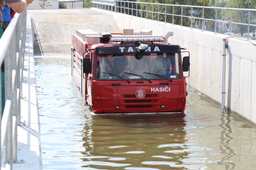 Polygon je dlouhý 54 metrů a požární automobily se mohou brodit až v hloubce 1,6 metru. Díky třem výkonným čerpadlům se tento polygon napouští pouze hodinu rychlostí 5000 litrů za minutu. Hasiči tak mají unikátní možnost testovat svojí techniku pro reálné situace nejen při povodních.