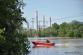 Hasiči kontrolovali hráz a převáželi kapitány lodí.