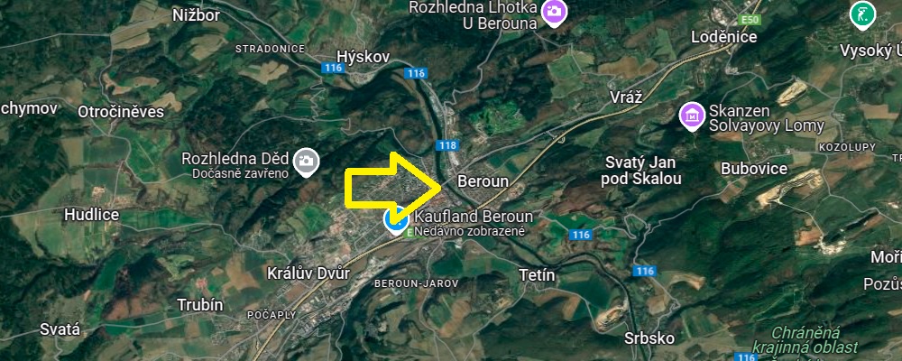 Králův Dvůr, Nový Jáchymov, Zdice, Chyňava, Hýskov, Loděnice, Počaply, Chrustenice, Rudná, Vysoký Újezd, Karlštejn, Liteň, Tetín, Svatý Jan pod Skalou, Tlustice