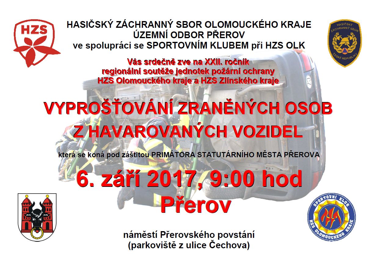 Město Přerov bude ve středu 6. září 2017 hostit 22. ročník regionální soutěže jednotek požární ochrany HZS Olomouckého a HZS Zlínského kraje ve vyprošťování zraněných osob z havarovaných vozidel.