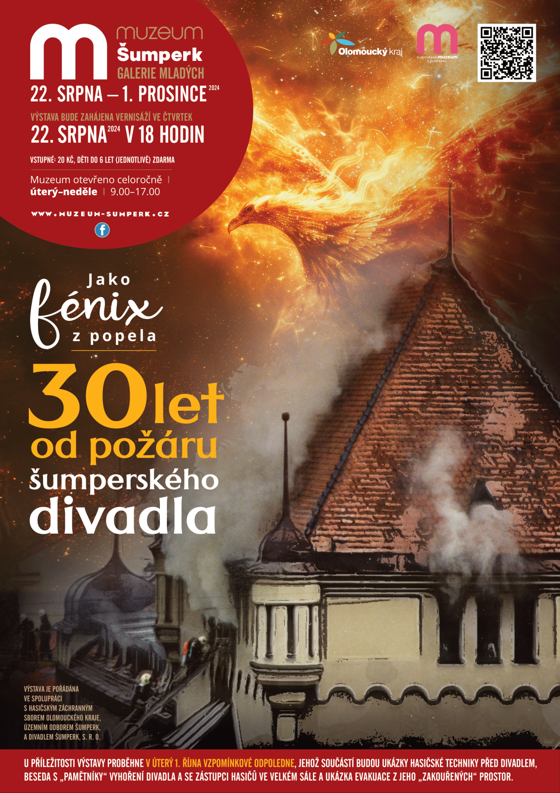 Přijměte pozvání na netradiční výstavu Jako Fénix z popela, kterou letos připravilo Vlastivědné muzeum v Šumperku ve spolupráci s profesionálními šumperskými hasiči. Prostřednictvím výstavy a doprovodných akcí chce připomenout 30 let od ničivého požáru šumperského divadla. Vernisáž výstavy se uskuteční ve čtvrtek 22. srpna od 18 hodin.