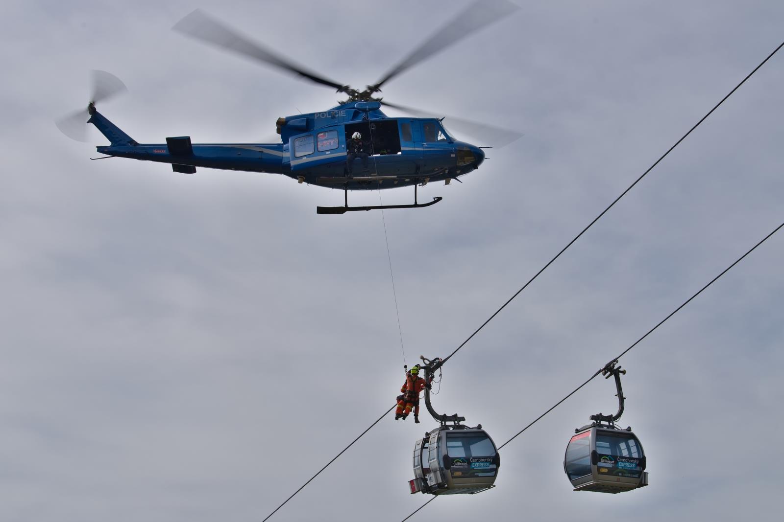 Dvoudenní výcvik započal na spodní stanici lanové dráhy, kde záchranáři cvičili samotný přístup ke kabinám a jejich otevírání pomocí lanové techniky s následným zajištěním a přípravou zachraňovaných osob na transport. Následující den už výcvik probíhal ve spolupráci s Leteckou službou Policie ČR a jejich vrtulníkem Bell 412. Záchranáři ve dvoučlenných týmech byli pomocí palubního jeřábu vrtulníku spouštěni na jednotlivé kabiny, kde trénovali samotnou záchranu osob. V případě takového typu záchrany jsou úkoly jasně rozdělené. Zatímco první ze záchranářů má na starost otevření dveří, jejich zajištění a vstup do kabiny lanovky, kde provede zajištění osoby a její přípravu k transportu, úkolem druhého záchranáře je vyzvednutí osob v záchranném šátku a jejich transport na palubu vrtulníku.