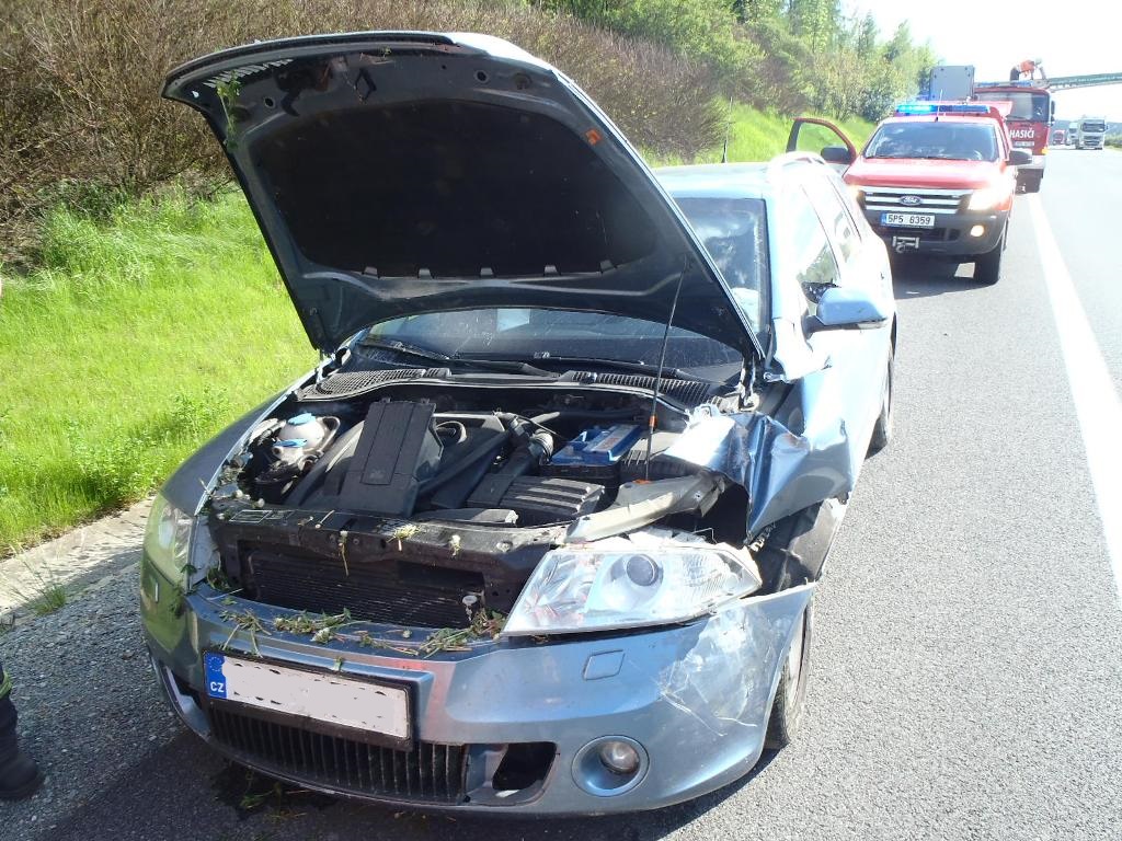 U 45. kilometru dálnice D5 ve směru na Prahu zasahovaly u dopravní nehody osobního auta jednotky ze dvou krajů - hasiči z Rokycan a Hořovic. Vozidlo se nacházelo v odstavném pruhu. Jeho řidič vyvázl bez zranění. Při nehodě došlo k poškození kovového zábradlí hlásky SOS a betonového víka vpusti.