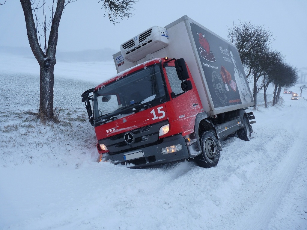 U Loučimi hasiči z Klatov vyprostili z příkopu nákladní auto. Zásah hasičům komplikovalo husté sněžení. K nehodě se dostavil traktor s radlicí, který musel před samotným vyprošťováním prohrnout závěje. Řidič vyvázl bez zranění, provozní kapaliny z vozidla neunikly.