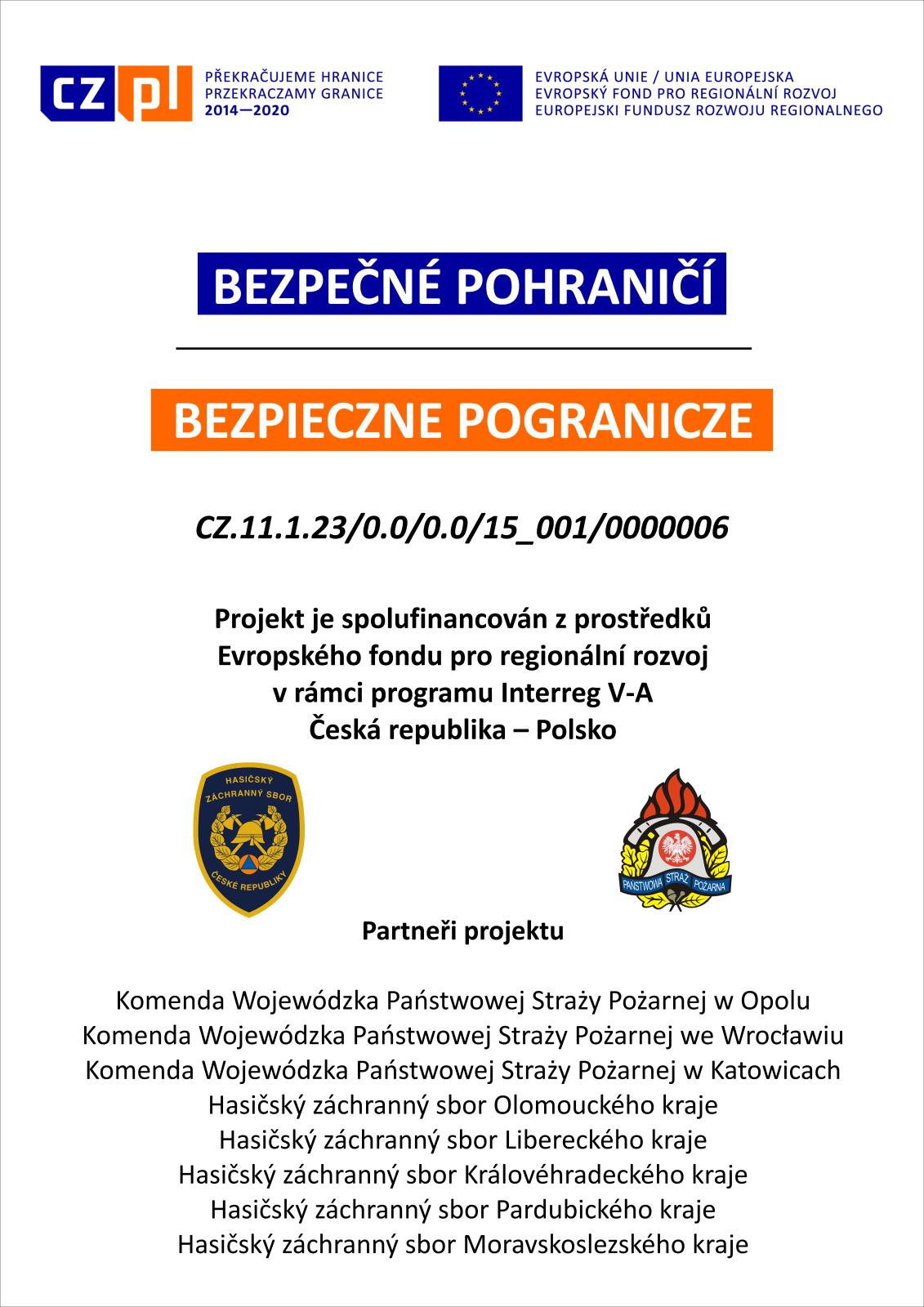 Vlajkový projekt č. CZ.11.1.23/0.0/0.0/15_001/0000006 "Bezpečné pohraničí" - "Bezpieczne pogranicze" byl spolufinancovaný z prostředků Evropského fondu pro regionální rozvoj prostřednictvím programu Interreg V-A Česká republika – Polsko a je výsledkem dlouhodobé spolupráce mezi hasičskými sbory v České republice a Polsku. Koncepce a náplň projektu byla připravena společně partnery na základě analýz a závěrů z přeshraničních zásahů a cvičení.