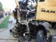Řidič nákladního vozidla Man se z dosud nejasných příčin střetl s traktorem a osobním vozidlem. To narazilo do sloupu veřejného osvětlení, které poškodilo. Z přívěsu za traktorem se vysypala převážená senáž a nákladní auto skončilo částečně na chodníku. Jeho řidič zůstal zaklíněný uvnitř kabiny. Na místo události v 17:48 hodin vyjeli profesionální a dobrovolní hasiči z Hořic se dvěma cisternami.