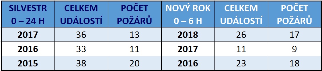 Silvestr a příchod roku 2018 z pohledu středočeských hasičů