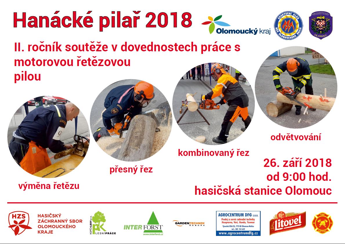 Ve středu 26. září 2018 se v areálu hasičské stanice Olomouc (Schweitzerova 91, 779 00 Olomouc) uskuteční 2. ročník soutěže v dovednostech práce s motorovou řetězovou pilou „Hanácké pilař 2018“. Zahájení soutěže je v 9:00 hod.