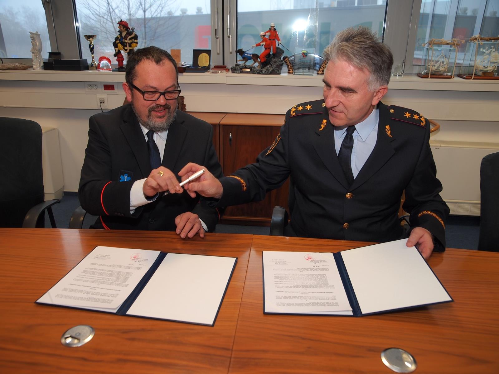 3. 2. 2017 (Nicole Zaoralová) - Generální ředitel HZS ČR genmjr. Ing. Drahoslav Ryba a MUDr. Marek Slabý, MBA, prezident asociace zdravotnických záchranných služeb ČR dnes společně podepsali prohlášení o tísňovém volání v podmínkách České republiky.