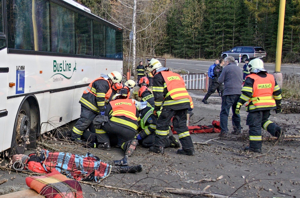 Silný vítr, vyvrácené stromy a v důsledku toho dopravní nehoda dvou autobusů. Velké množství zraněných cestujících, z nichž polovina hovoří pouze polsky. Tak vypadal scénář taktického cvičení, které se uskutečnilo ve středu 30. října v Harrachově.