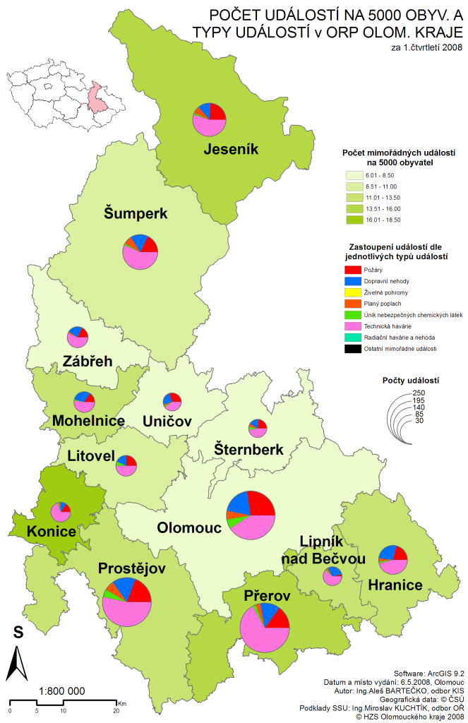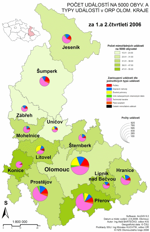 Porovnání událostí na 5000 obyvytel dle ORP Ol kraje -1. polovina roku 2006 - 2008