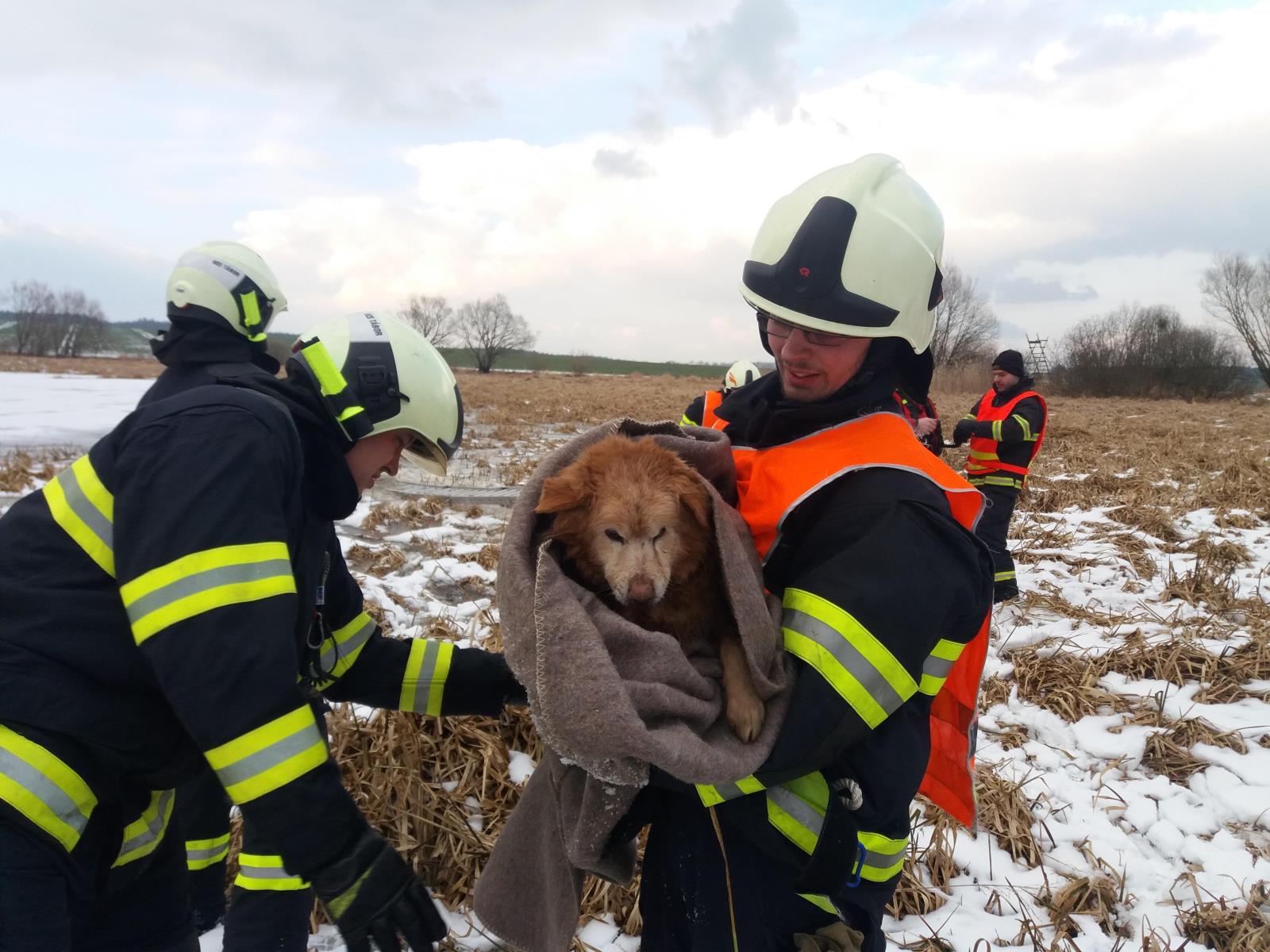 Další zásah, ke kterému byla ve středu táborská profesionální jednotka vyslána, byla záchrana topícího se psa. Hasiči vyjeli v 14:50 hodin do Mladé Vožice k rybníku Mikuláš. V době jejích příjezdu zde již byla přítomna mladovožická dobrovolná jednotka. Jeden z profesionálních hasičů se vybavil ochrannými prostředky pro zásah na vodě a po nastavovacích žebřících se dostal až k psovi. Vylovil ho pomocí odchytové tyče a dopravil na břeh. Tam ho hasiči zabalili do deky a dali do tepla zásahového auta dobrovolných hasičů. Psa si převzali pracovníci obce Mladá Vožice, kteří mu zajistí veterinární péči.