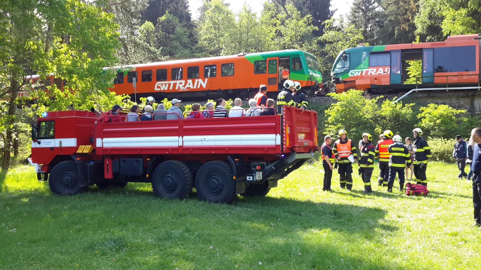 Informaci o nehodě obdrželi hasiči na tísňovou linku 112 v 8:44 hodin. Operační středisko HZS Jihočeského kraje na místo vyslalo profesionální hasiče ze stanic Křemže a České Budějovice, vyjela také podniková jednotka SŽDC České Budějovice. Velké množství sanitek vyslala také ZZS, a to včetně vrtulníku LZS. K nehodě se dostavila také Policie ČR. .jpg)