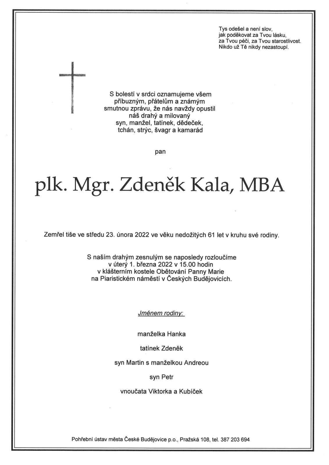 Zdeňka Kaly, ekonomického náměstka a statutárního zástupce HZS Jihočeského kraje, který věnoval jihočeskému sboru více než 35 let, a