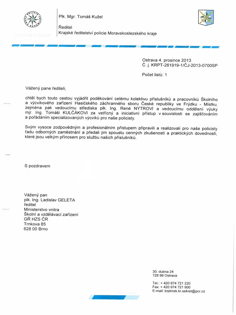 - Krajské ředitelství policie Moravskoslezského kraje (4.12.2013)