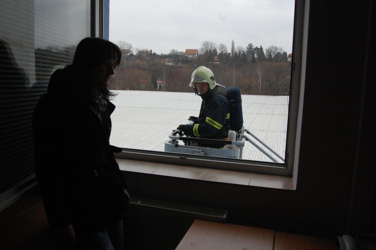 Pomocí automobilového žebříku byly ještě transportovány osoby, které nestačily včas utéci a zůstaly uvězněny v jedné z kanceláří. Tyto tři osoby neutrpěly žádné zranění.