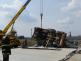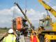 Převrácený jeřáb na stavbě dálnice D3 u obce Chlebov.