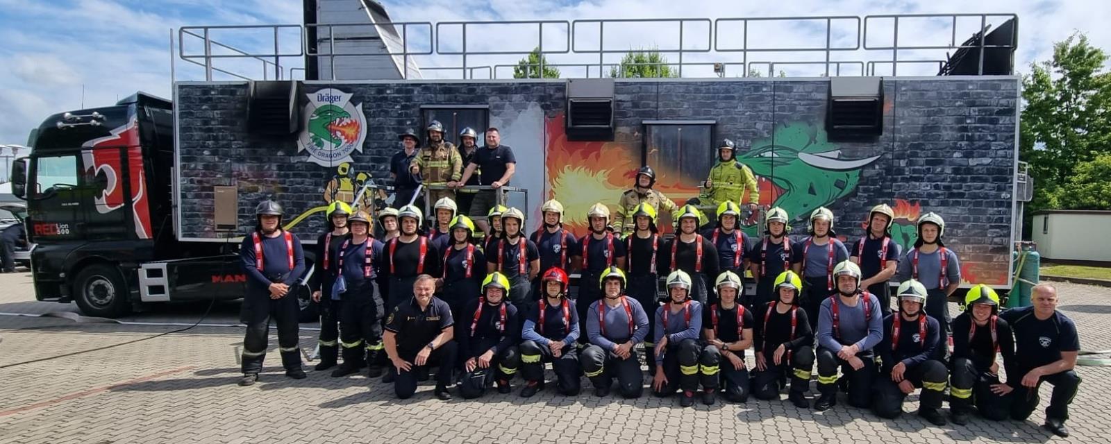 V pondělí 12. června proběhl v areálu společnosti Dräger Safety, s.r.o., která sídlí před vjezdem do Prahy po brněnské dálnici D1 v Čestlicích, výcvik profesionálních hasičů v ohňovém trenažéru Fire Dragon 7000.