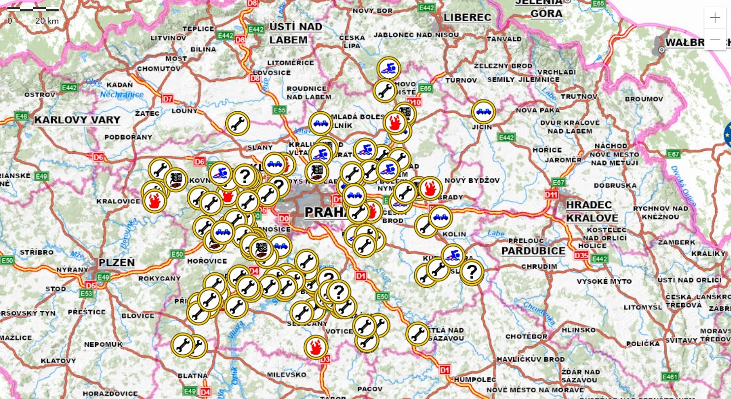 Mapa technických zásahů ve středu 24. ledna 2024