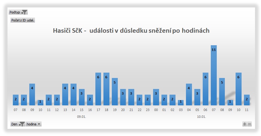 V 49 případech šlo o dopravní nehody, u 41 událostí jsme likvidovali popadané nebo nebezpečně nakloněné stromy, u dalších zásahů jsme pomocí speciálních vozidel vyprošťovali zapadlé sypače, autobusy a další vozidla. Největší počet výjezdů zaznamenali hasiči v okresech Kutná Hora a Benešov. Nejvíce práce mělo operační středisko ve čtvrtek mezi sedmou a osmou hodinou, kdy přijalo a řešilo 11 nových událostí.