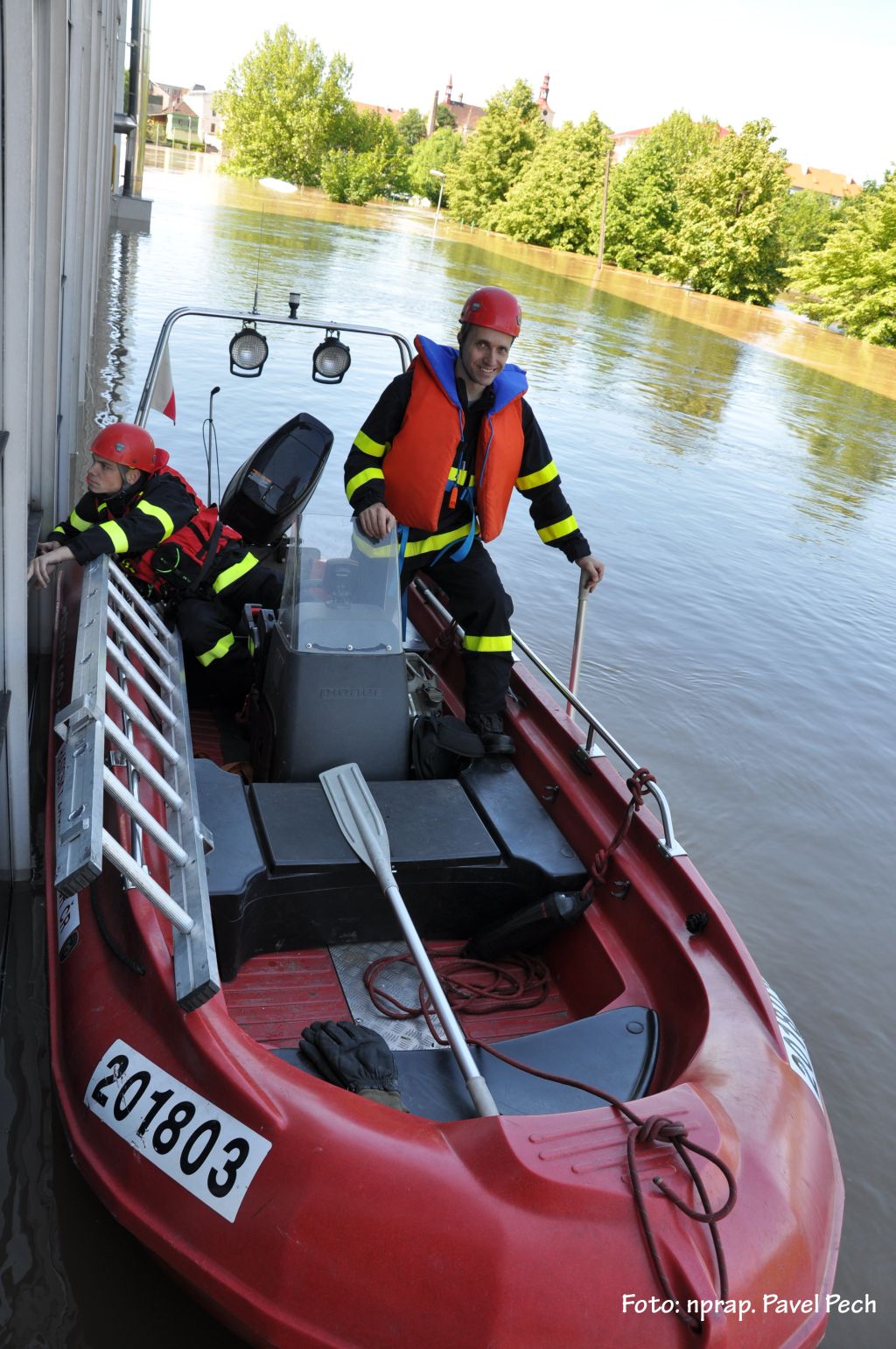 Přeloučští hasiči dnes v dopoledních hodinách vytahovali strom, který se zasekl u zdymadla v Přelouči. Hasiči se u pilíře jistili lezeckou technikou a na pomoc si nechali přivolat bagr z Povodí Labe. Zásah při zvýšeném průtoku Labe byl náročnější. Během středečního dopoledne hasiči v Přelouči odstraňovali několik naplavených stromů v Labi v Přelouči.